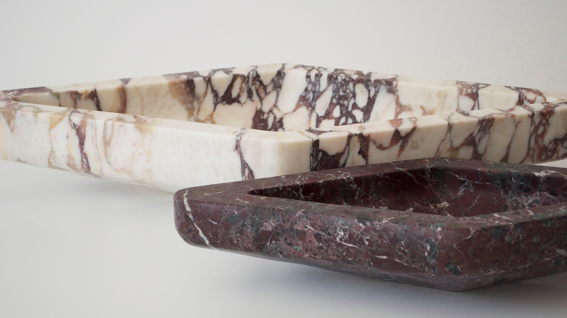 Passionate about rock music, but probably also inspired by silence, Michaël Verheyden creates fashion accessories and home objects. In 2002 Verheyden started his company producing leather bags and accessories, hence his mastering of this material. He prefers noble and durable materials that feel natural and age beautifully. Apart from his quest for good quality fabrics, Michaël Verheyden puts a lot of time into finding new ways to construct things. In 2009, Verheyden broadened his scope to encompass home accessories and furniture. He works together with his wife, Saartje Vereecke, out of a brick home-studio in Genk. Vereecke trained as a painter, and worked in the textile industry before joining the studio. Verheyden’s aesthetic embraces simple geometric forms, minimalist lines, expert craftsmanship, and rich, quality materials—leathers, linen, bronze, brass, marble, and the like. His home collection ranges from candlesticks and vessels to seating and objets d’art. He makes many of his design prototypes himself and works closely with expert craftspeople for the final production. All objects are finished, assembled, and packaged in the Verheyden workshop. Also, notably, bespoke leather baskets are hand sewn in-house.
