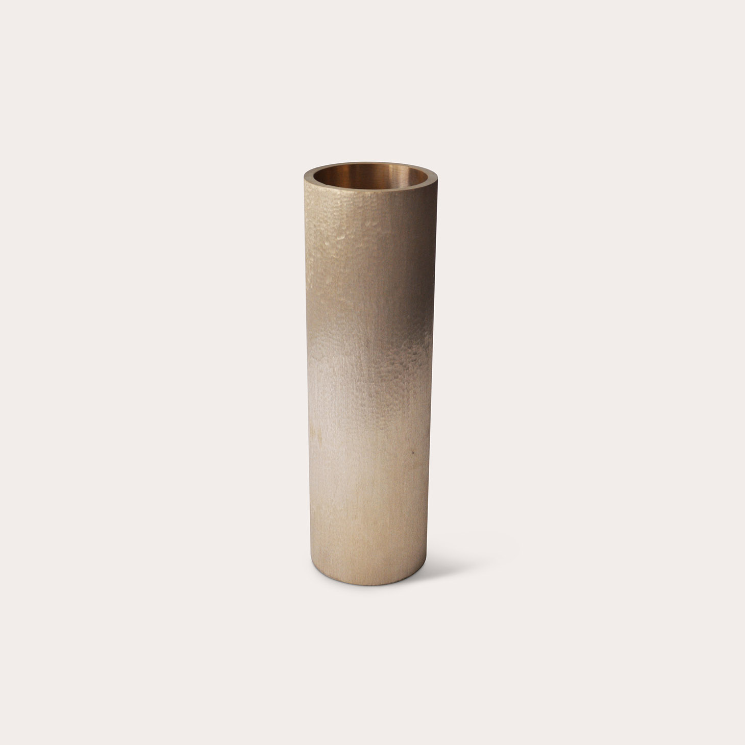 Passionate about rock music, but probably also inspired by silence, Michaël Verheyden creates fashion accessories and home objects. In 2002 Verheyden started his company producing leather bags and accessories, hence his mastering of this material. He prefers noble and durable materials that feel natural and age beautifully. Apart from his quest for good quality fabrics, Michaël Verheyden puts a lot of time into finding new ways to construct things. In 2009, Verheyden broadened his scope to encompass home accessories and furniture. He works together with his wife, Saartje Vereecke, out of a brick home-studio in Genk. Vereecke trained as a painter, and worked in the textile industry before joining the studio. Verheyden’s aesthetic embraces simple geometric forms, minimalist lines, expert craftsmanship, and rich, quality materials—leathers, linen, bronze, brass, marble, and the like. His home collection ranges from candlesticks and vessels to seating and objets d’art. He makes many of his design prototypes himself and works closely with expert craftspeople for the final production. All objects are finished, assembled, and packaged in the Verheyden workshop. Also, notably, bespoke leather baskets are hand sewn in-house.